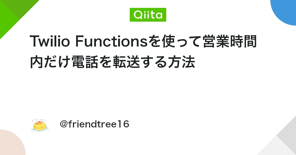 Twilio Functionsを使って営業時間内だけ電話を転送する方法 - Qiita